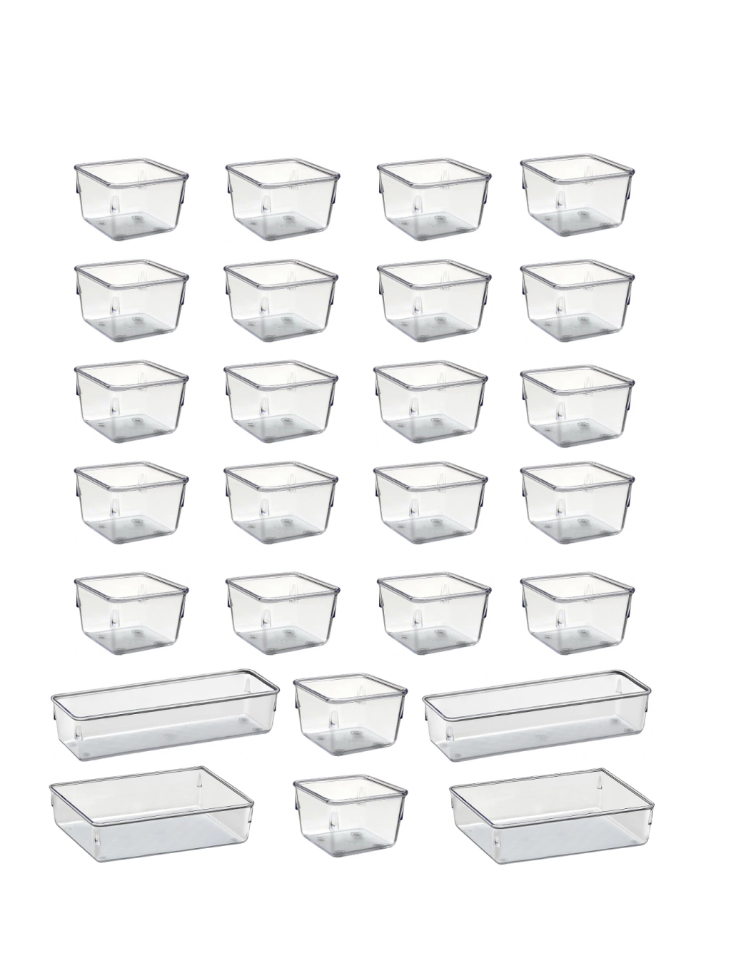 O Kit com 26 Organizadores Acrílicos Acrimet é a solução perfeita para quem deseja manter seus ambientes organizados de maneira prática e eficiente. Produzidos em plástico acrílico de alta qualidade e com acabamento transparente, esses organizadores facilitam a visualização rápida dos itens guardados. A natureza modular permite que você ajuste o uso dos organizadores conforme o tamanho das suas gavetas e prateleiras.